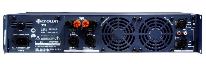 Cục Đẩy Crown T3 có khả năng khuếch đại công suất 330W/CH/8Ω và 450W/CH/4Ω, ở chế độ bridge mono có công suất lên đến 900W ở 8Ω. Cục đẩy này cho thấy khả năng khuếch đại tín hiệu cực tốt, tái tạo tiếng bass chắc khỏe và tiếng mic chân thực, những âm cao luôn được đảm bảo, không bị vỡ tiếng giúp âm thanh phát ra từ Crown T3 luôn mang lại sự hài lòng tuyệt đối cho người sử dụng. Chính vì vậy đây cũng là sản phẩm đáng tin cậy để sử dụng cho các ứng dụng âm thanh chuyên nghiệp.
