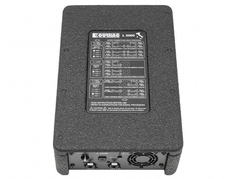 Tất cả các kết nối đầu ra được thực hiện thông qua các đầu nối speakON. Các kênh A, B, C và D là các kênh độc lập, E và F ở chế độ cầu. Outline L3000 được tích hợp cài đặt sẵn 4 preset, giúp thay đổi lộ trình của tín hiệu.