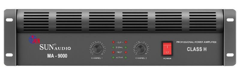 Cục Đẩy Sunaudi MA-9000 là dòng ampli chuyên nghiệp thuộc phân khúc cao cấp, được thiết kế để đáp ứng các hệ thống âm thanh sân khấu, hội trường, karaoke hoặc sự kiện lớn đòi hỏi hiệu năng mạnh mẽ và độ ổn định cao. Thiết bị sở hữu 2 kênh công suất cực mạnh, cho ra 1600W/kênh ở 8Ω, 3000W/kênh ở 4Ω, đồng thời có thể hoạt động ở chế độ Bridge mono đạt 6000W (8Ω) và 8000W (4Ω), mang lại khả năng khuếch đại vượt trội cho mọi loại loa công suất lớn. Sunaudi MA-9000 sử dụng mạch khuếch đại Class H hiện đại, giúp tối ưu hiệu suất hoạt động, giảm nhiệt lượng tỏa ra và tiết kiệm điện năng mà vẫn đảm bảo chất âm chi tiết, mạnh mẽ và trung thực. Thiết bị có đáp ứng tần số rộng 20Hz-20kHz (±0.5dB), độ méo hài tổng dưới 0.05%, tỉ lệ tín hiệu trên nhiễu >100dB cùng Damping Factor >300:1, giúp âm thanh luôn sạch, kiểm soát loa chính xác và cho dải trầm chắc, dải cao sáng rõ.