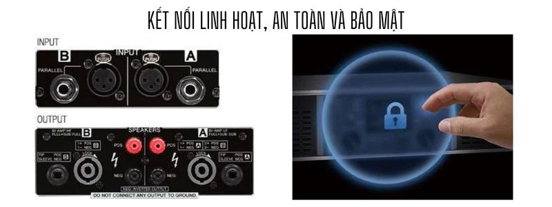 - Đầu nối I/O (Cổng ngõ ra loa): Neutrik speakON NL4 x2, Binding post x2 pairs, 1/4" PHONE(TS) x2